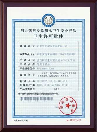 衛生許可批件